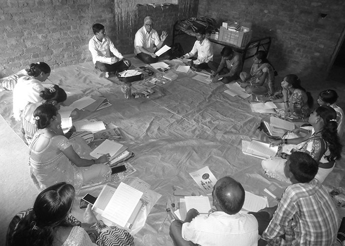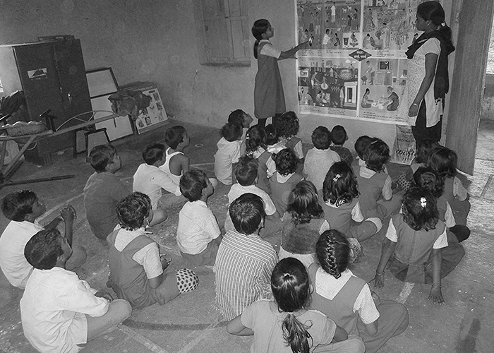 In the area of education, our focus with M.P.S.M is on strengthening primary education and language skills. The curriculum is specially designed to be relevant in the rural context. The teaching-learning materials attempt to make teaching-learning interactive, participatory and enjoyable. The teaching-learning materials include videos; large-size picture charts printed on durable flex material; teachers’ handbooks, flip charts and games. These materials are used not only with children in the village-level Learning Centres but also as part of continuing education for farmers and women’s groups.