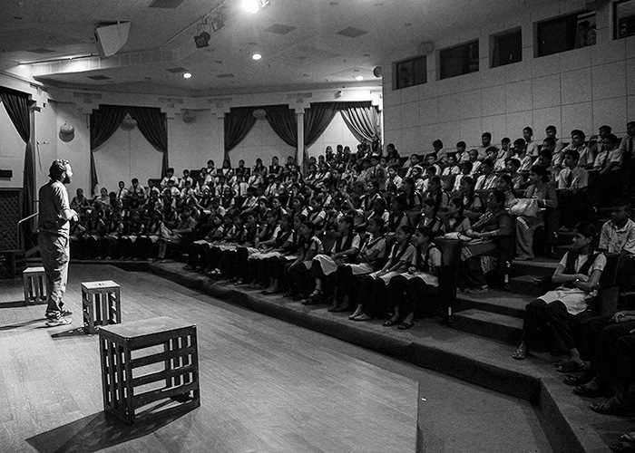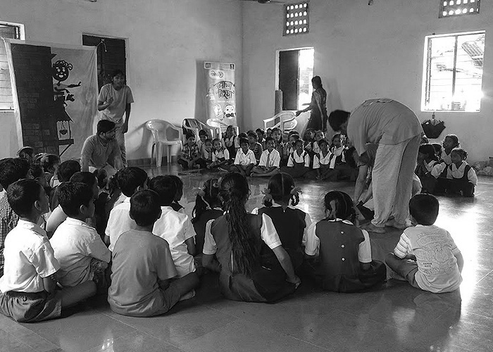 At the Theatre, one of the many projects under this title is meant to create a space for learning through the experience of the theatre. The project is simple, bring children to the theatre! We also facilitate pre watching and post watching workshop to orient child to the theatre, as often they have not seen a play. This is to help open their eyes to look for a meaning, to be open to experience and spark their own imagination that the theatre helps fuel. In the post play workshop, we open up dialogues around individual perspective, how we look at things differently, how we feel differently and how we experience a moment as a community while in theatre.